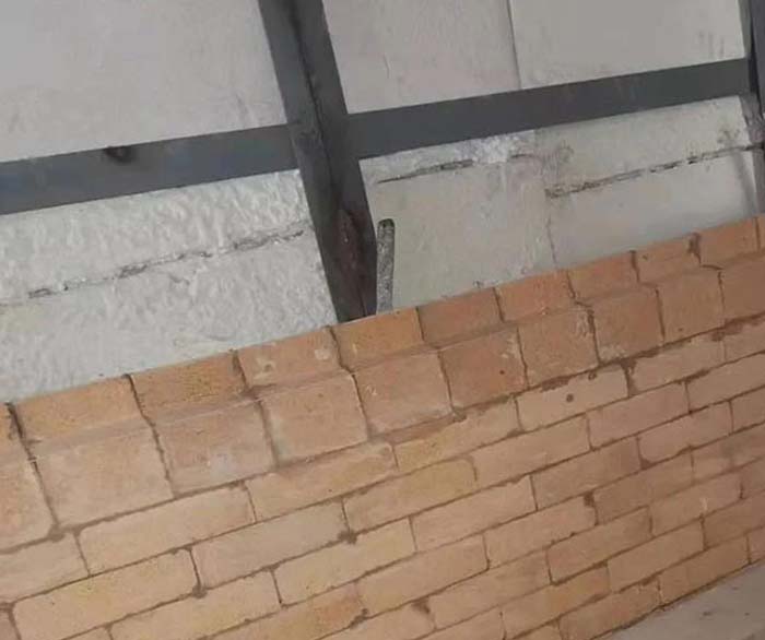 直段耐火磚首先在沖擊區(qū)砌筑TZB耐火磚,然后在沖擊區(qū)砌筑耐火磚,然后在非沖擊區(qū)砌筑耐火磚。通過切割沖擊區(qū)的耐火磚,沖擊區(qū)的耐火磚與非沖擊區(qū)的耐火磚之間形成狹窄的膨脹縫。另外,所有的磚縫都需要錯(cuò)開。