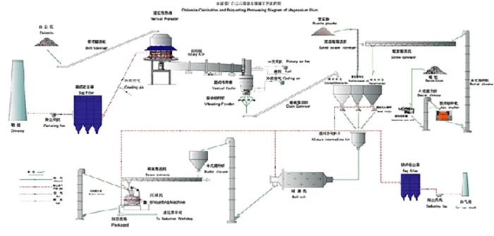 年產(chǎn)5000噸金屬鎂生產(chǎn)工藝流程設(shè)備配置:400×600鄂破機(jī)、250×1000細(xì)碎機(jī)、2.5×40回轉(zhuǎn)窯、2×20米冷卻機(jī)、MQG1.83×7米球磨機(jī)、MQG1.5×5.7球磨機(jī)、MG1725煤磨機(jī)、HL300斗式提升機(jī)、煤氣發(fā)生爐2.5米、壓球機(jī)、豎式預(yù)熱器、G×400螺旋輸送機(jī)。