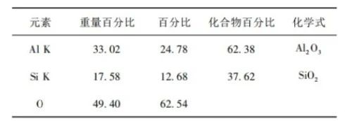 從熱力學(xué)上看,Al₂O₃-SiO₂系材料[4]各物相在氯化反應(yīng)中:莫來石相(A₃S₂)非常不穩(wěn)定,其成份見表2,石英相(SiO₂)非常穩(wěn)定,剛玉相(Al₂O₃)居中;在碳熱還原中:石英相非常不穩(wěn)定,剛玉相非常穩(wěn)定,莫來石相居中。在實(shí)際中,爐襯材料是如何損壞的,其過程是怎樣發(fā)生的,這要從殘磚顯微結(jié)構(gòu)分析入手。
