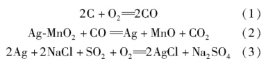 由精礦配料工序送來的混合料通過料斗送入回轉(zhuǎn)窯內(nèi)氯化焙燒,混合料在回轉(zhuǎn)窯內(nèi)還原性氣氛中的停留時間為30~60min,焙燒溫度為780±50℃,其發(fā)生的主要反應(yīng)如下: