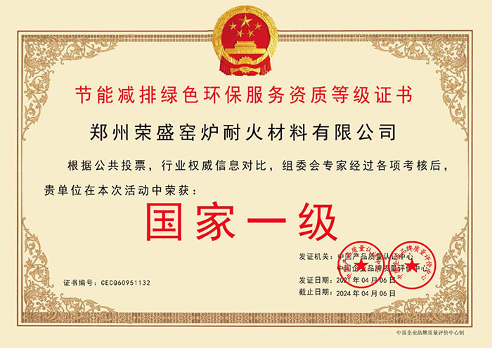 春風(fēng)沐雨,捷報(bào)傳音。近日,鄭州榮盛窯爐耐火材料有限公司被中國產(chǎn)品質(zhì)量認(rèn)證中心、中國企業(yè)品質(zhì)質(zhì)量評(píng)價(jià)中心等權(quán)威機(jī)構(gòu)聯(lián)合授予“節(jié)能減排綠色環(huán)保服務(wù)資質(zhì)等級(jí)證書”。