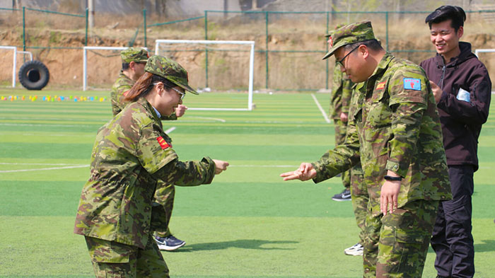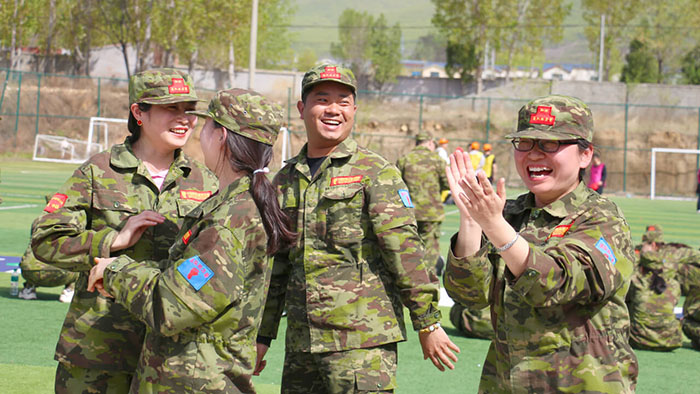 開(kāi)訓(xùn)前,在破冰啟航環(huán)節(jié)——【智勇通關(guān)】項(xiàng)目中,每組選一個(gè)大魔王來(lái)防守別隊(duì),該隊(duì)隊(duì)員依次挑戰(zhàn)大魔王,石頭剪刀布定輸贏,贏了直接通過(guò),輸了轉(zhuǎn)一圈,回來(lái)接著挑戰(zhàn),再輸即增加圈數(shù),直到全部隊(duì)員通過(guò)。大家把團(tuán)隊(duì)當(dāng)成了自己的“城堡”,在“對(duì)抗魔王”中,每個(gè)隊(duì)員都拼盡全力,期待被幸運(yùn)女神光顧,期待團(tuán)隊(duì)能盡早完成任務(wù),大家的歡笑聲、喝彩聲灑滿(mǎn)了訓(xùn)練場(chǎng)。
