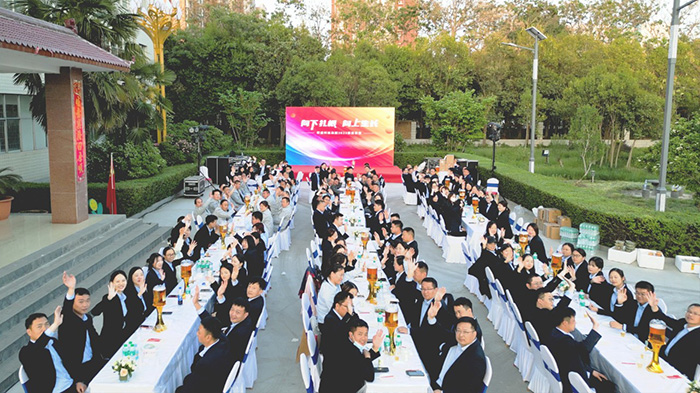 隨著一陣陣歡呼聲,家宴正式拉開序幕,董事長楚科奇及集團管理層共同登臺祝酒,為這個美好的歡聚時刻,與所有家人舉杯慶祝,F(xiàn)場華燈璀璨,笙歌高揚,家人滿座,笑語滿堂。