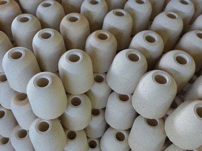 塞頭磚位于塞棒下端和水口磚呈嚴(yán)密配合的耐火材料質(zhì)磚。不澆注時它堵住水口保證不漏鋼。澆注時提高塞棒,使塞頭磚和水口磚產(chǎn)生間隙,鋼水從水口流出。控制塞棒的高低,可調(diào)節(jié)鋼水的流出量。塞頭磚和棒芯間可用螺紋或銷子固定。塞頭磚可以是黏土質(zhì)、不燒高鋁質(zhì)及焦油浸漬的不燒高鋁質(zhì)磚。