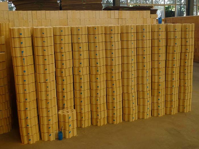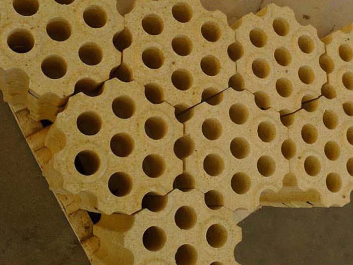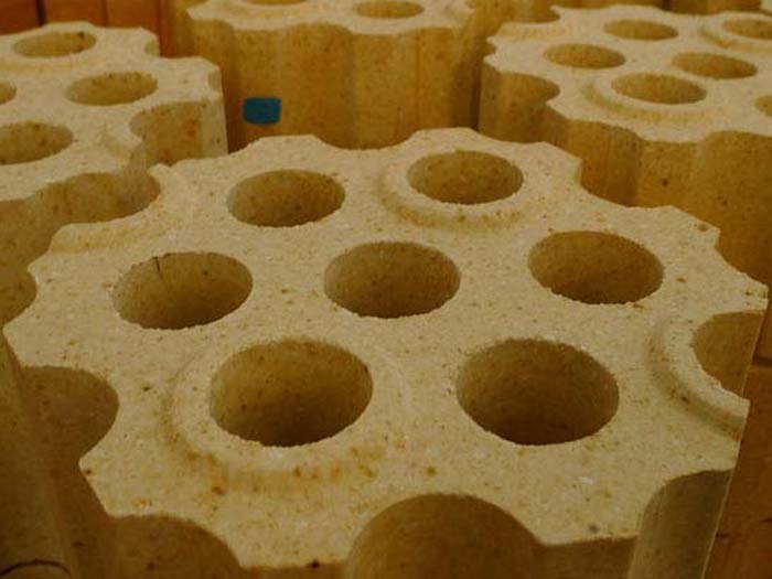 格子磚主要用在熱風(fēng)爐上,當(dāng)熱風(fēng)低于900℃時(shí),一般選用粘土磚;當(dāng)風(fēng)溫高于900℃時(shí),格子磚則采用高鋁磚、莫來石磚、硅線石磚和硅磚等。